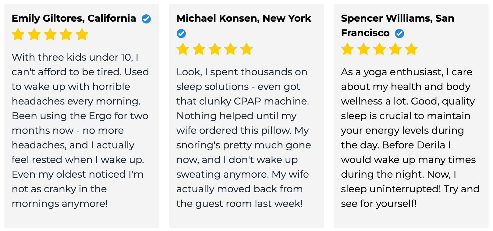 Here's what shocked Dr. Richardson most:The solution already existed."We've had the answer in our labs for 20 years," Dr. Richardson confessed."But no company was making this technology available for home use."But that finally changed when he discovered one small U.S. company.Unlike regular pillows that tilt your head forward or sideways,Derila Ergo™'s revolutionary Neck Elevation Design™ keeps your neck in line with your body’s natural alignment.So whether you sleep on your side, stomach or back,your airway stays naturally open because there's no mechanical kink."When I called Steven with my findings, he was skeptical," Dr. Richardson remembered."But he was desperate. Ready to try anything. Six months of failed CPAP therapy, and his marriage was hanging by a thread..."